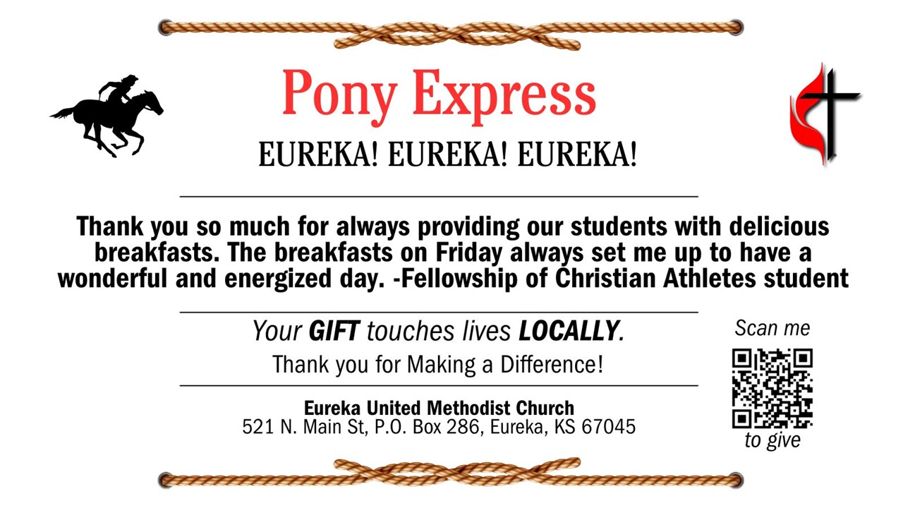 Come and worship with us and engage in our vital activities. The United Methodist Church of Eureka is located on North Main and strives to be a vital part of the Eureka community. We are a community of Christ offering love and hope through dynamic worship, creative arts and missional outreach. In addition to Sunday worship at 9:30 am, we have an active United Women in Faith group, United Methodist Men’s group, Kid's Club, Choir, and Grief Support Group.